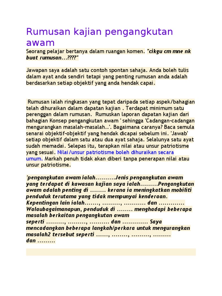 Rumusan Kajian Pengangkutan Awam Pdf