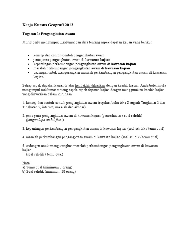 Contoh Kerja Kursus Geografi Pengangkutan Awam Tingkatan 2 Ne_Mathias243 June 07 2022. Kerja kursus geografi by fahmiazizi. Pengangkutan Awam Kerja Kursus Geografi PT3 2016.